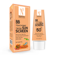 Introducing a sunscreen that blocks harsh UV rays and gives you a makeup-like look, this NutriGlow BB Touch Daily Tinted Sunscreen is the one for you! With loaded natural ingredients such as raspberry seed oil, lavender extracts, jojoba ester, tea tree oil, hydrolyzed wheat protein, vitamin E, licorice root extract, and mulberry essential oil, it offers toxin-free, sweat-resistant, and OMC-free properties. It has a quick, dry formula that blends effortlessly on your skin and leaves a natural tint to enhance skin tone. The NutriGlow BB Touch Daily Tinted Sunscreen leaves no white cast and has a high rating of PA ++++; it has SPF 50, which blocks unwanted UV rays effectively. The sunscreen is designed to suit all Indian skin tones and skin types, including sensitive skin. This two-in-one product will save your storage space while traveling and protect the skin against tanning, uneven skin tone, sunburn, etc. The NutriGlow BB Touch Daily Tinted Sunscreen is fragrance-free, lightweight, and quickly absorbing. Stay protected during active pursuits without the worry of sunscreen runoff. Use a pea-sized amount of sunscreen on your face and neck 15 minutes before going outside. Reapply every 4 hours if you are outdoors.
