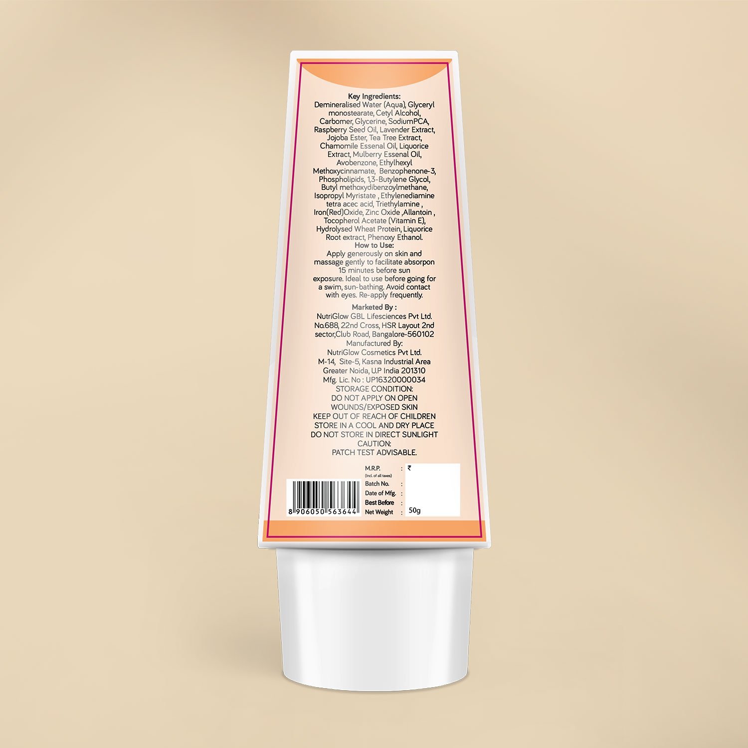 - TINTED SUNSCREEN: With a plethora of sunscreens available out there, a few have tinted effects. No worries, NutriGlow is here to take care of that. With this sunscreen, you get a light tint with sun protection. It has a unique shade designed to suit all Indian skin types